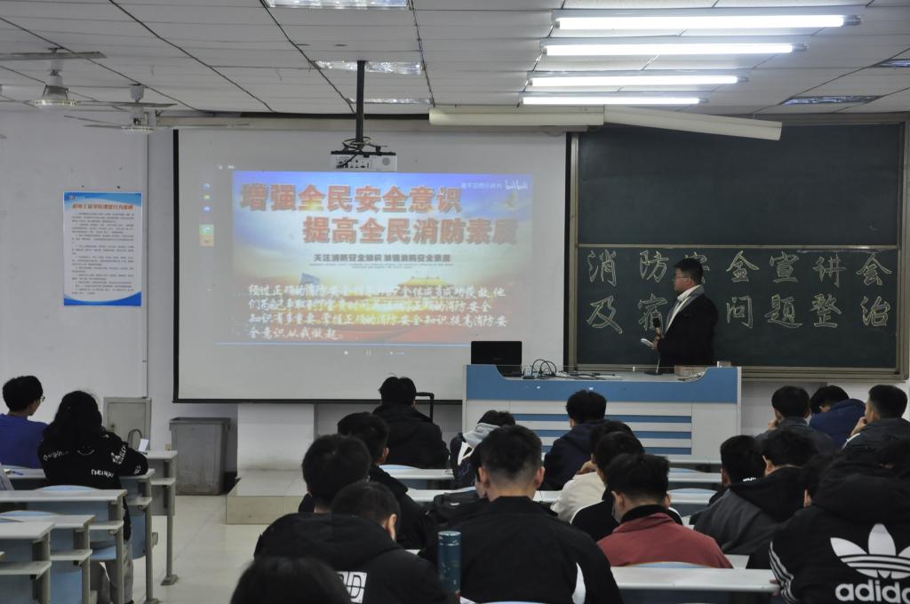 为深入贯彻落实全省学校安全电视电话会议精神,增强学院师生消防安全意识,提高消防安全技能,beat365唯一官网于11月10日下午在理工楼2405开展了消防安全宣讲会及宿舍隐患问题整治活动,学院辅导员张乾老师及beat365唯一官网学生代表100余人参加活动。
