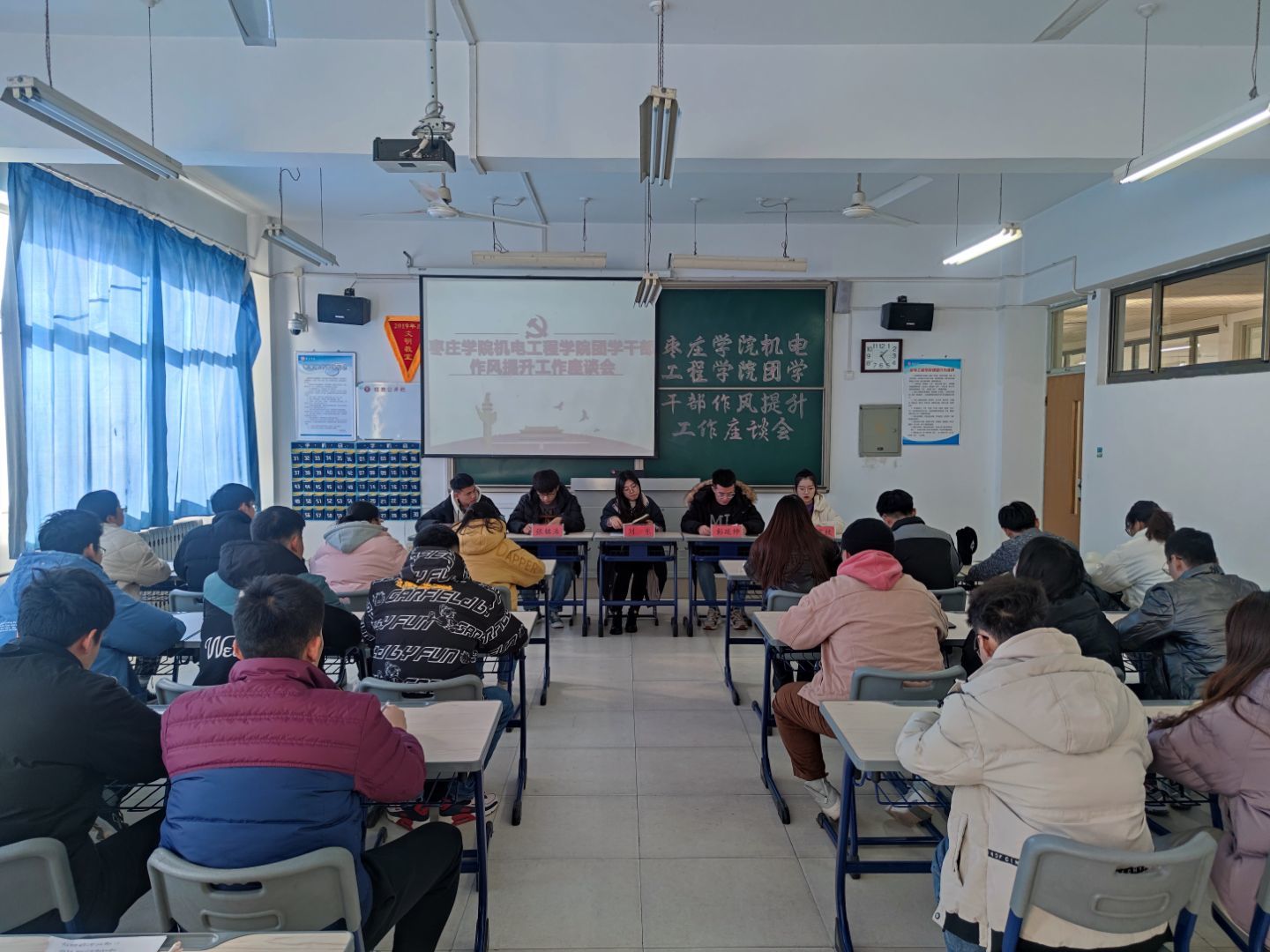 为提升团学组织的组织力、引领力、服务力和大局贡献度,强化团学干部的工作作风,推动学校共青团和学生会深化改革,12月14日中午,beat365官网在理工楼2416教室开展beat365唯一官网团学干部作风提升工作座谈会,团总支辅导员刘东老师出席本次会议,各班学生代表、部分学生会成员参加本次会议。