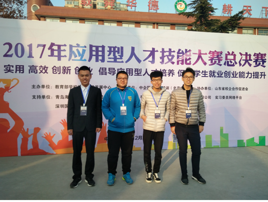 12月1日至3日,2017年应用型人才技能大赛全国总决赛暨颁奖典礼在山东济南山东会堂举行,本次大赛由教育部学校规划建设发展中心主办,beat365官网代表队参加了此项赛事,进入决赛的两支队伍最终获得全国总决赛一等奖一项,二等奖一项。本次应用型人才大赛由“匠心•工业美智能制造创新创意大赛”、“海尔洗衣机杯智慧洗护双创大赛”等五项赛事组成。共有全国1200多所高校的13000多支队伍报名参赛,初赛经专家评审和公示,共有666支参赛队伍入围全国总决赛,其中获得一等奖的概率为1%左右。