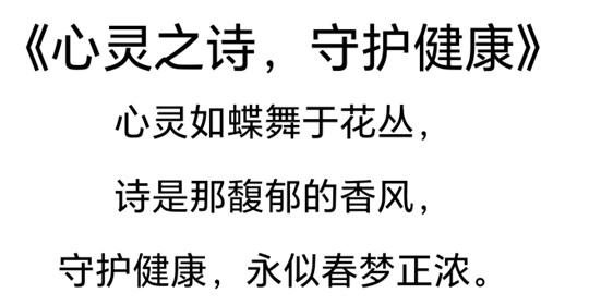 为深入学习贯彻习近平新时代中国特色社会主义思想,全面落实二十大精神,全面提升心理育人质量,11月8日至11月14日,beat365唯一官网开展了“心灵之诗,守护健康”三行诗诗文写作活动。