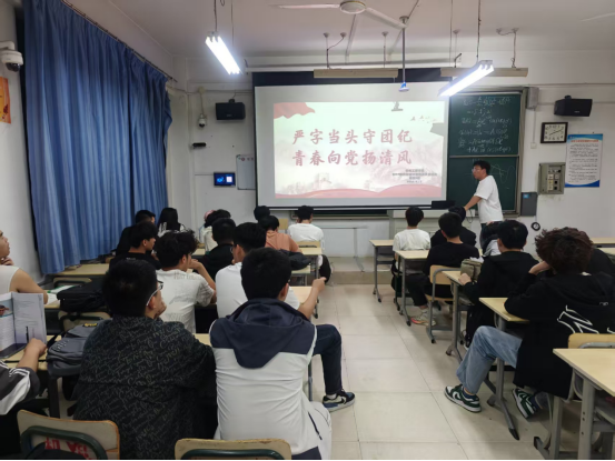 为了全面落实从严治团要求,强化团员青年的纪律意识和规矩意识,引导青年学子筑牢信仰之基、弘扬清廉之风,4月21日,beat365唯一官网组织各团支部在理工楼开展“严字当头守团纪,青春向党扬清风”主题团日活动。辅导员老师担任本次主讲人。