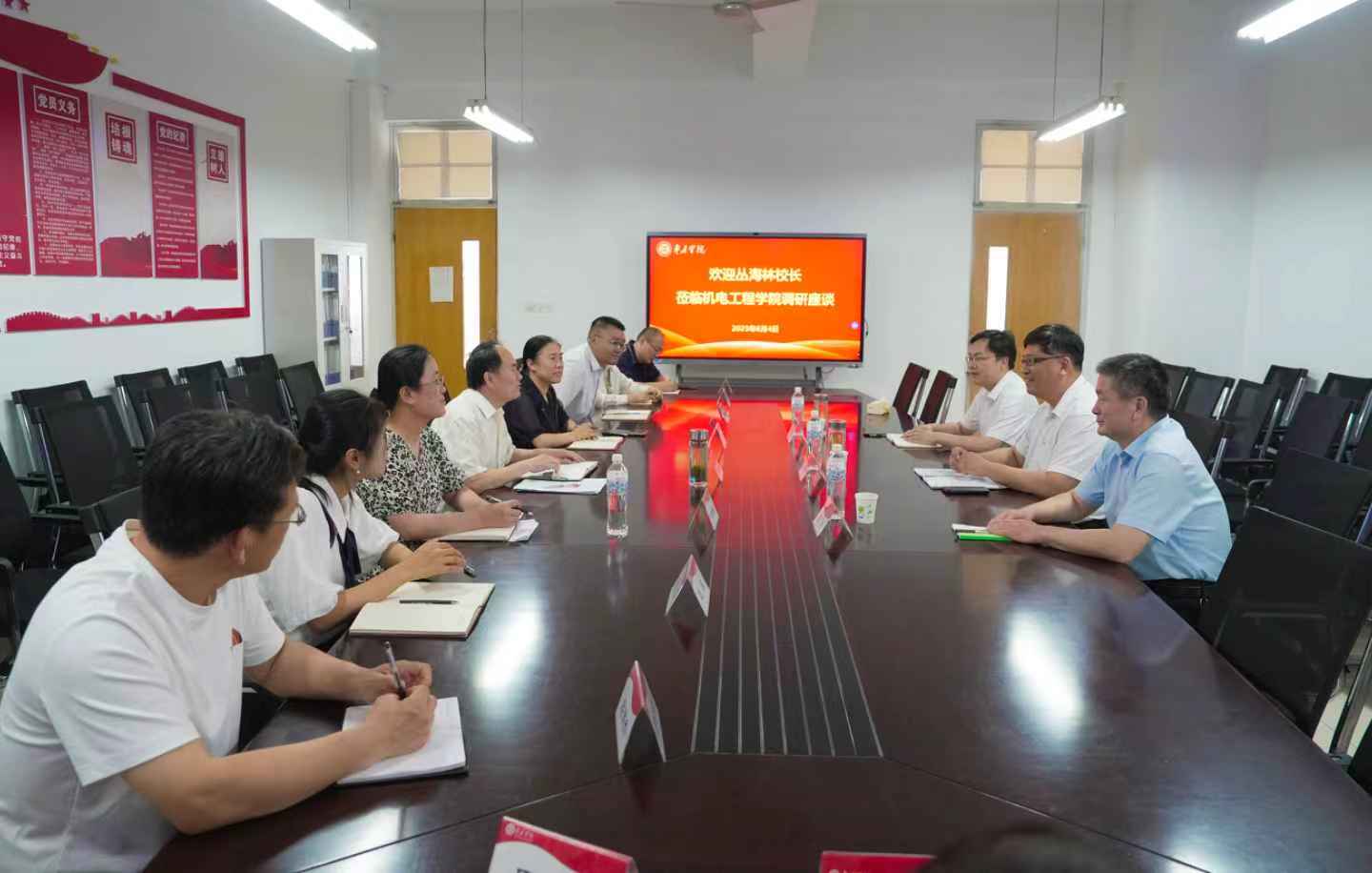 6月4日上午,校党委副书记、校长丛海林到beat365唯一官网调研指导工作。校党委委员、宣传部部长、研究生处处长闫昕,校长办公室主任闵祥国陪同调研。学院领导班子成员及教研室主任、专业负责人等参加座谈。