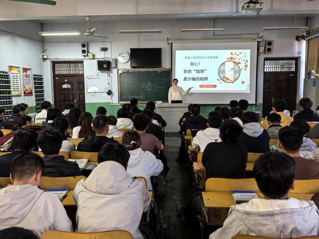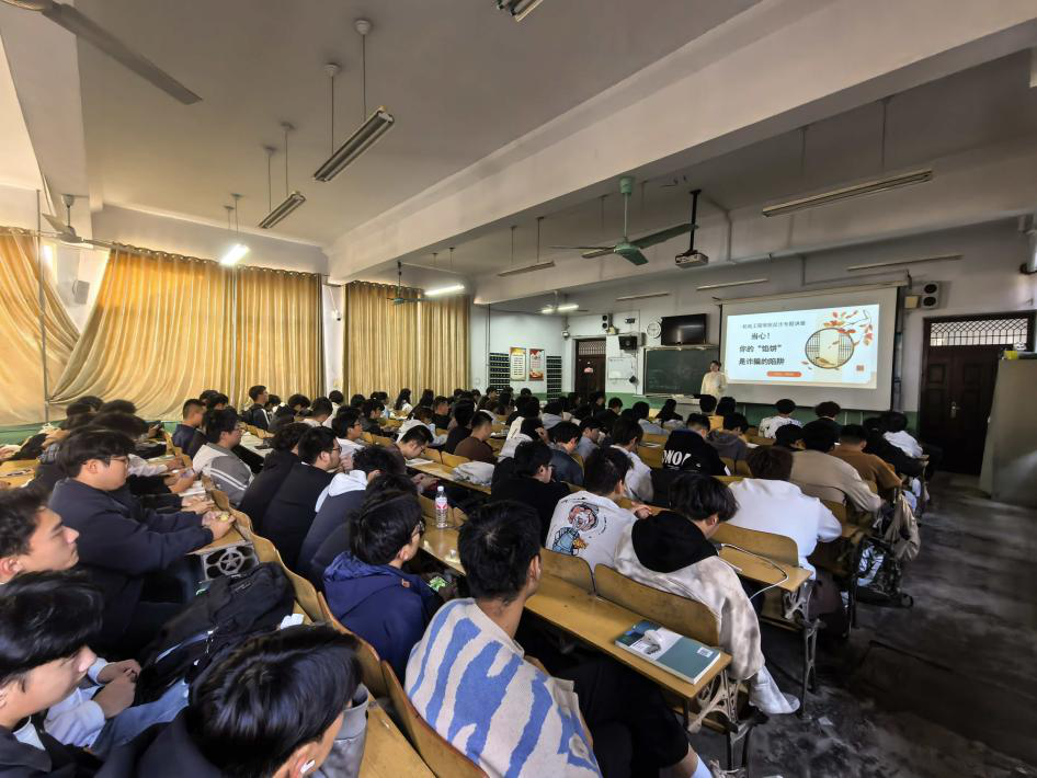 为切实提升2025级新生的安全防范意识与自我保护能力,有效预防和减少校园电信网络诈骗案件的发生,11月11日下午,beat365唯一官网在文科楼101举办“当心!你的‘馅饼’是诈骗的陷阱”反诈专题讲座。本次活动由专职辅导员潘婉鑫主讲,新生代表聆听讲座。