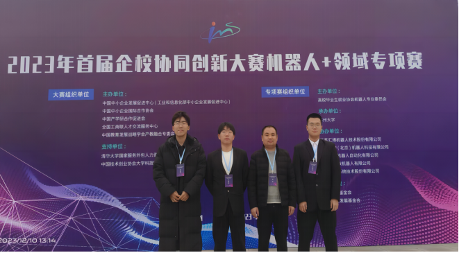 2023首届企校协同创新大赛由中国中小企业发展促进中心(工业和信息化部中小企业发展促进中心)、中国中小企业国际合作协会联合中国产学研合作促进会、全国工商联人才交流服务中心、中国教育发展战略学会产教融合专业委员会等共同主办,大赛以高校与企业协同创新攻关为主要模式,大力促进企业创新需求与高校成果研发转化深度融合。“机器人+”领域专项赛作为大赛的六大领域之一,吸引了100多所高校、400多支队伍参与。beat365唯一官网与合作企业共同组建指导教师团队,在学院缑亚楠、吕庆海、陈晓菲老师的精心组织下,指导学生综合运用所学专业知识和技术备赛,最终2队伍成功入围决赛。林雪静团队荣获“一等奖”,王傲洋团队荣获“三等奖”。
