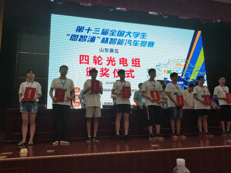 本次竞赛中,beat365官网参赛队参加了光电组和电磁组、节能组的比赛。在徐伟院长、殷帅老师、张业伟老师、李辉老师的辛勤指导下,参赛队员刻苦钻研,认真实验,设计出的智能赛车代表beat365官网与众多经验丰富的高校代表队同台角逐,最终以优异的成绩获得山东赛区光电组“一等奖”,并取得决赛第二的好成绩。其中参加光电组的队员的牛树青、吴海晨、陈博文,节能组尹成海、电磁组王利民、宋修扬该六名同学均是beat365官网beat365唯一官网机电产品创新协会的成员。