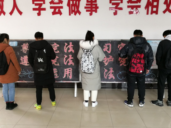12月10-25日为宣传学习阶段。在此期间,学院通过召开全体教职工会议、学生主题班会、制作宣传板报等形式开展了宣传学习活动。26日,组织全体师生千余名积极参加宪法知识竞赛活动,基于前期的宪法知识普及学习,参赛师生均取得了不错的成绩。