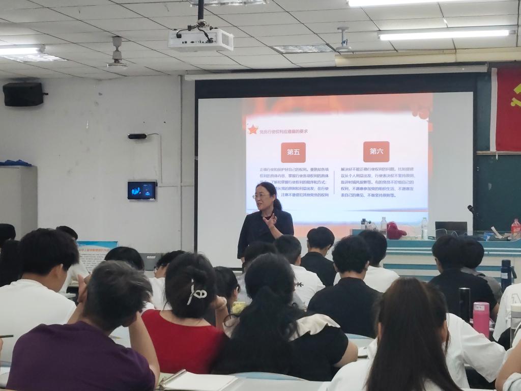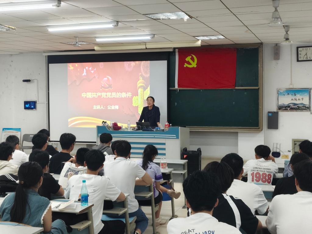 为切实提高入党积极分子的政治素养,引导他们从思想上入党,5月16日晚,党委副书记公金梅在理工楼2405教室以《中国共产党党员的条件》为题讲授专题讲课,113名入党积极分子参加了学习。