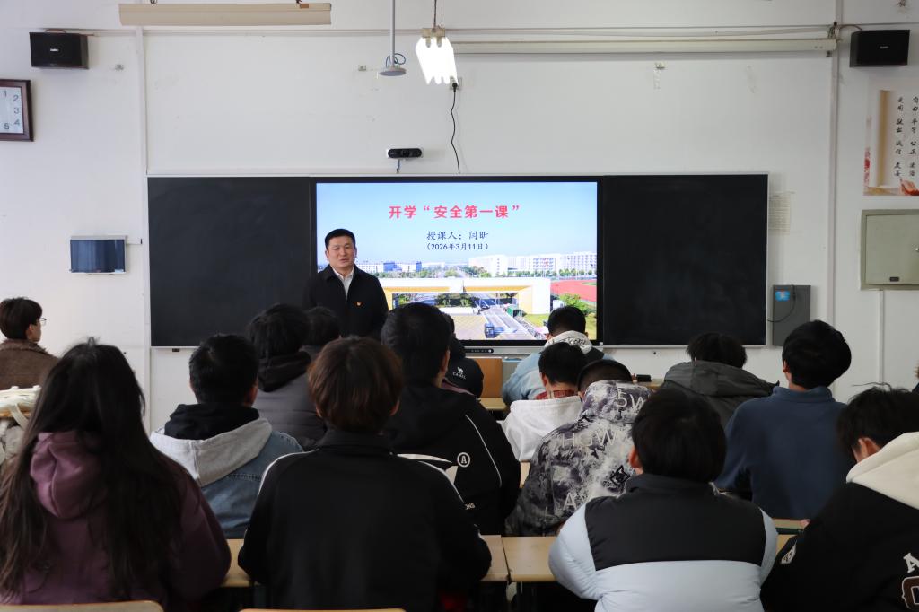 闫昕围绕习近平总书记关于安全生产的重要论述,按照党中央、国务院决策部署及省委、省政府、校党委安全工作要求,为同学们讲授开学 “安全第一课”。他从提高思想认识、强化安全教育、压实安全责任、维护校园稳定、筑牢反诈防线等方面讲解,强调校园安全无小事,要坚决守牢校园安全底线,全力保障师生生命健康。