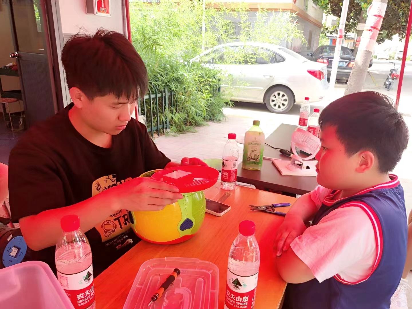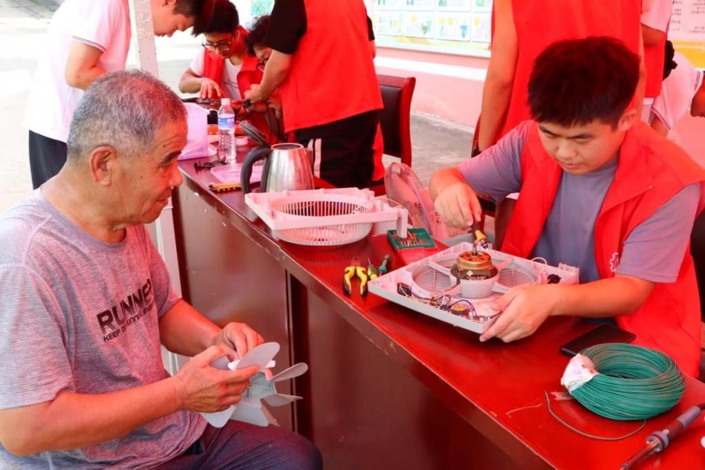 汗水,浇灌友情。实践队已经做好充分的准备,准备迎接未知的挑战,本次三下乡实践队来到了辛庄社区,实践队也将在这里开始社会实践活动。在社区负责任地宣传下,附近居民带着有故障的电器纷纷赶来,维修小队的志愿者们热情接待前来咨询的居民,同时一丝不苟地为故障电器进行检修。他们都尽心尽力,细心检查,卖力十足,充分地运用自己所学专业知识。居民们送来的故障电器都已成功修复,维修小队的动手能力受到了居民们的赞美与认可,而他们良好的服务态度则得到了当地居民的称赞。