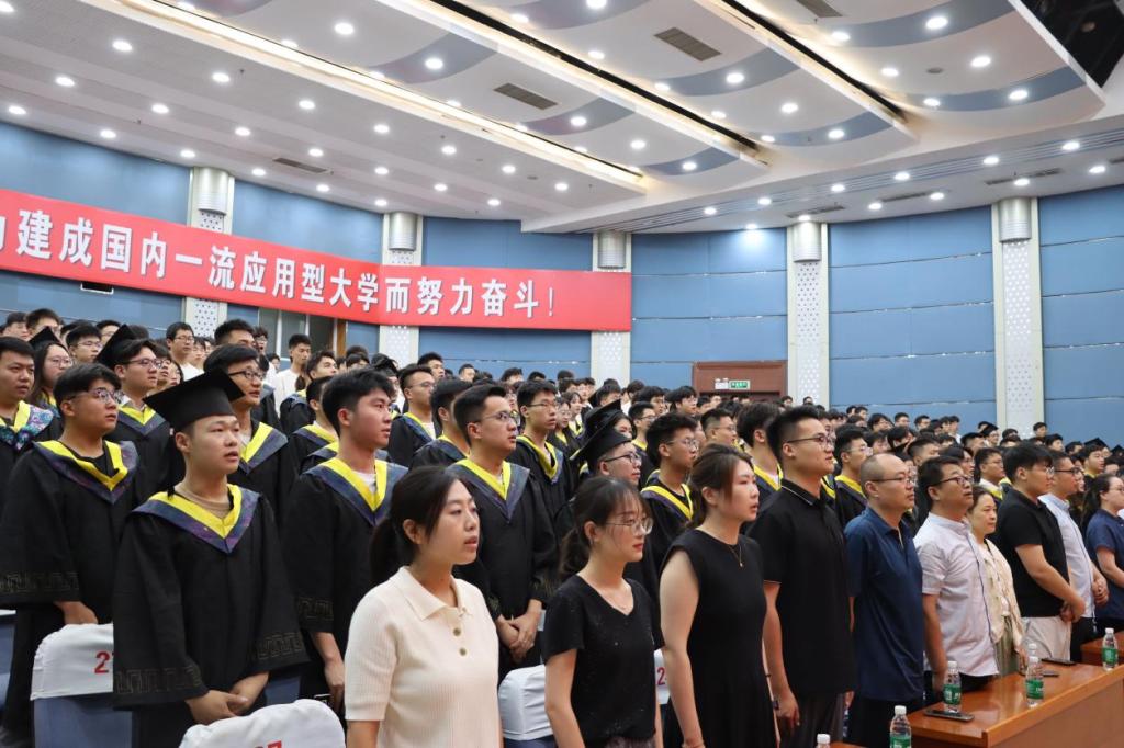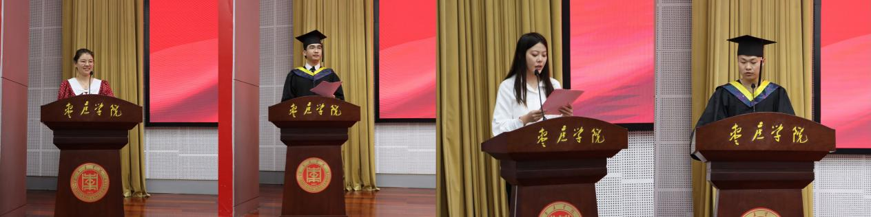 教师代表雷梦琪鼓励毕业生们始终保持对知识的渴望、对生活的热爱、对梦想的追求,在未来的道路上勇往直前、追求卓越,创造属于自己的精彩人生。优秀毕业生代表孙浩杰在发言中回顾了难忘的大学时光,表达了对母校的感激与不舍,毕业生代表向在座的老师敬献鲜花,表达他们深深的敬意。在校生代表姚舒靖表达了对毕业生的美好祝愿。最后,毕业生代表于景康向全体毕业生发出文明离校倡议,呼吁同学们以文明、有序、感恩的态度告别母校,为学弟学妹们树立良好的榜样。