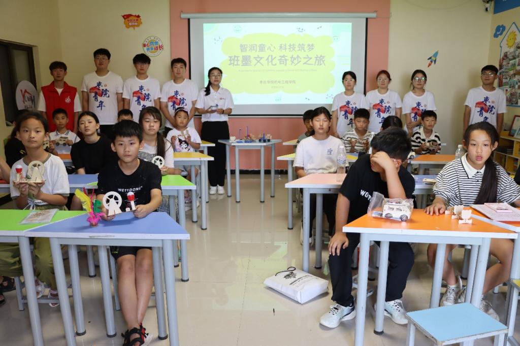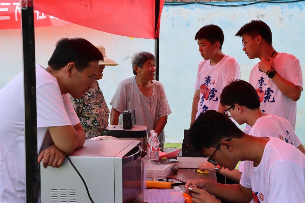 实践团队依托专业优势和特长,以开展家电义务维修为主线,进乡村、访民情、话振兴,运用所学知识助力乡村振兴,一个个“废弃”电饭煲、电水壶、电风扇、吹风机、洗衣机等在维修队手中如获新生,为村民们修复故障电器30余件。面对张庄村20余名留守儿童,志愿者们精心准备了生动有趣的科普宣讲,通过无人机、机器人、鲁班锁等为小朋友们讲解班墨文化、物理知识和科学原理等,并且带领他们动手组装手摇发电机、吉普车、小孔成像等作品,在小朋友心中埋下科教兴国的种子。