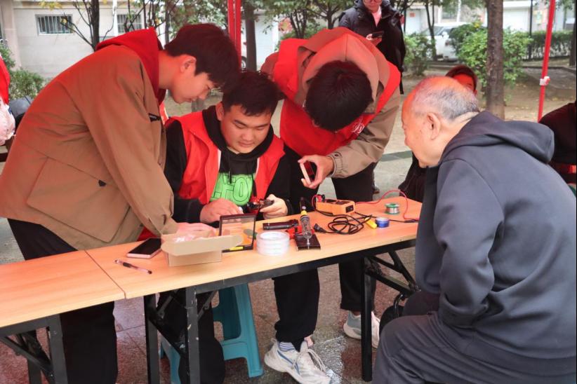 活动现场,志愿者们热情地接待每一位前来寻求帮助的居民,他们分工明确,有条不紊地对送来的家电进行检测和维修。无论是复杂的电路问题,还是简单的机械故障,志愿者们都认真对待,仔细排查,展现出扎实的专业知识和娴熟的维修技能,在志愿者的共同努力下,共维修了十余件家电。此外,志愿者还通过益智玩具、无人机模型等为社区儿童开展科普小讲堂,激发孩子们对科学的探索兴趣。