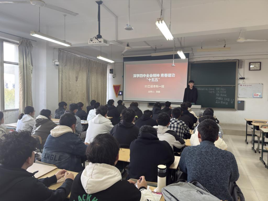 活动伊始,团支书围绕党的二十届四中全会精神,结合《中共中央关于制定国民经济和社会发展第十五个五年规划的建议》,系统阐释了“十五五”时期推动制造强国建设、实现高水平科技自立自强的战略部署。讲解聚焦“智能化、绿色化、融合化”的产业发展方向,紧密结合机电工程专业特色,深入剖析国家战略与专业学习的内在联系,帮助同学们进一步明确发展方向,增强专业认同与时代使命感。