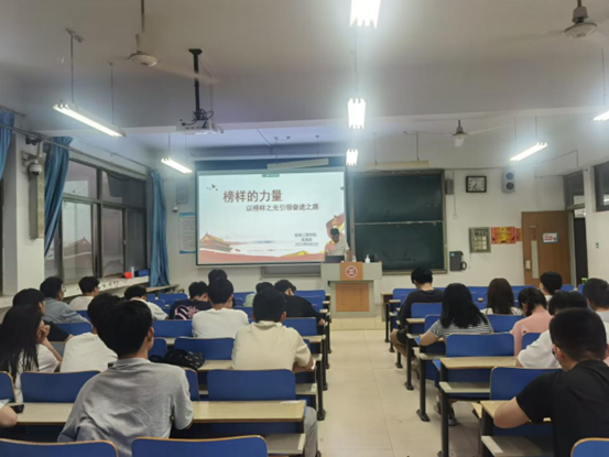 张海龙同学从习近平总书记、袁隆平院士、艾爱国和王亚平等人的优秀事迹讲起,回顾了中国共产党百年党史中“榜样之光”的典型故事,让同学们深刻感受到了榜样的力量。张海龙同学希望全体学生党员都可以向榜样学习,因为榜样是我们追寻理想、振奋士气的力量源泉。向榜样学习,我们就应当以他们为榜样,在自己力所能及的范围内,积极投身于公益事业,认真负责地完成我们的学业,为实现理想和抱负奋斗终生。