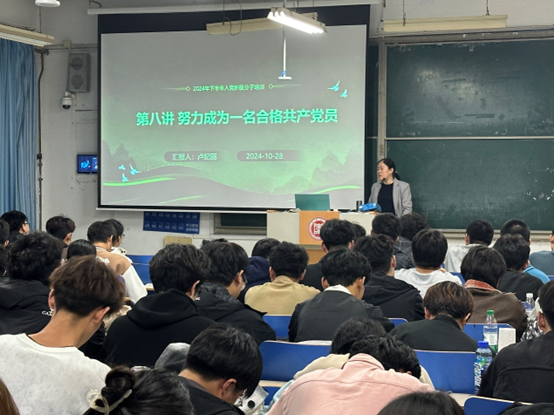 10月28日晚,院长卢纪丽在理工楼2504教室向学院2024年秋季学期全体入党积极分子讲授了题为《努力成为一名合格共产党员》的专题党课。