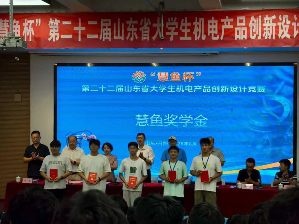 2025年8月25日-27日,第二十二届(2025年)山东省大学生机电产品创新设计竞赛决赛在日照落下帷幕。beat365官网参赛队员凭借扎实的专业功底、创新的设计理念与出色的实践能力,斩获一等奖3项、三等奖2项,并荣获“慧鱼奖学金”1项。
