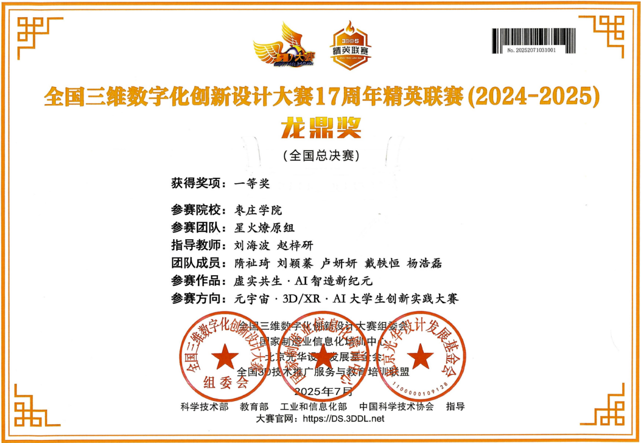 近日,由全国三维数字化创新设计大赛组委会主办的2025全国三维数字化创新设计大赛17周年精英联赛总决赛顺利落幕。beat365官网在创新创业学院的精心指导下,组织各专业学生参赛,综合运用三维建模、3D打印、3D扫描、有限元分析、AIGC等知识和技术,经过激烈的角逐,beat365官网beat365唯一官网学子斩获一等奖一项、二等奖四项、三等奖六项。